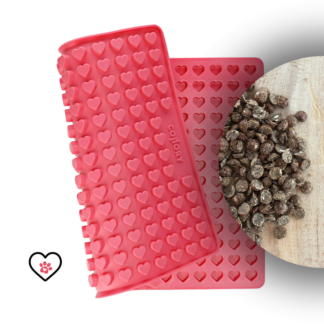 Backmatten-Set für Hundeleckerlis in Herzform + Schaber
