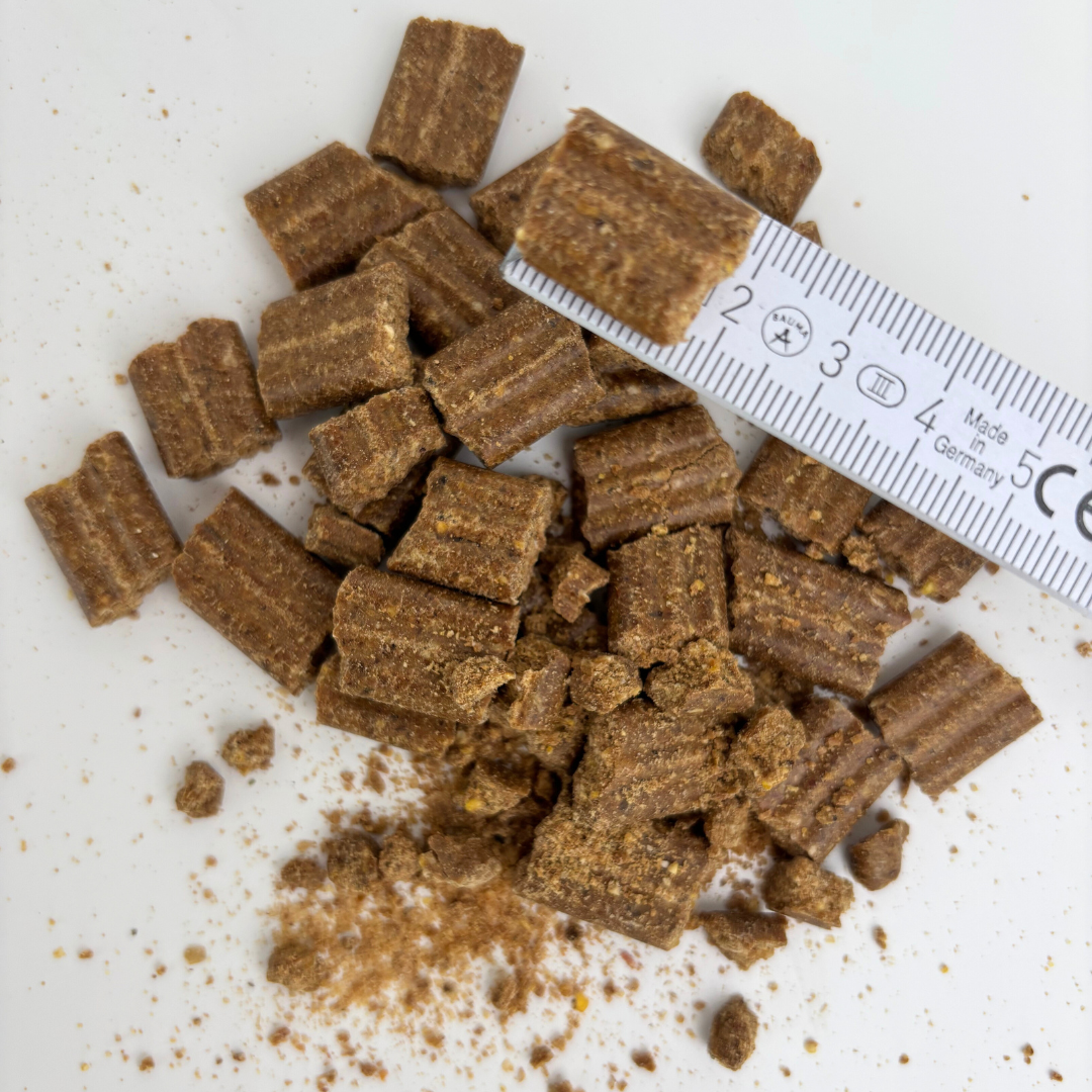 „Die schonende Kaltpressung sorgt dafür, dass alle wichtigen Nährstoffe, Vitamine und Mineralstoffe erhalten bleiben – genau das, was dein Hund für ein vitales, glückliches Leben braucht.